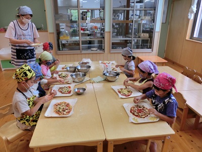 ●今月のクッキングの締めくくりは、つき組の「ピザ作り」です。