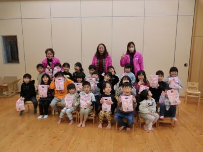 ● 本日(クリスマスイブイブ)、サンタさん(山都町商工会女性部)から、子ども達へお菓子のプレゼントがありました。