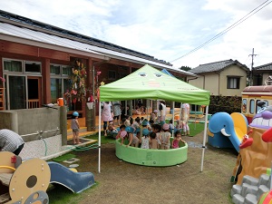 O 梅雨の合間を縫って、暑かったので「プール遊び」をしました。