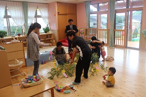 O 園児のおじいちゃん・おばあちゃんへ呼びかけ、保育参観と七夕飾りを行いました。