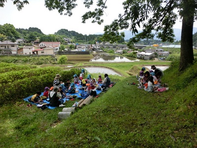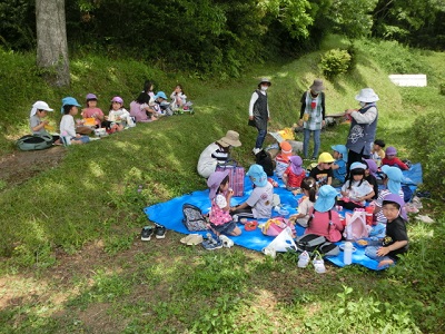 [R4.5.19(木)] ● 朝夕と昼間の温度差が大きいこの頃ですね。 ● 気候が穏やかだっだので、3歳以上児が近くの山へ「愛のこもった弁当」を持って、散歩に出かけました。 ● 水が張られた田んぼには虫たちがいたかな? ● みんなのお弁当は、好きなものやキャラクターおにぎり、デザートも色々で美味しそうでした。保護者の皆様の願いがこもっているような感じがしました。今日も楽しいお弁当時間です。 [2回]