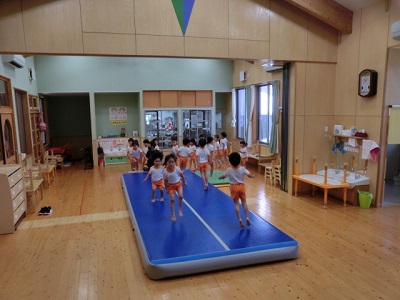 [R4.7.1(金)] ● 短い梅雨が明け、今週から暑い日が続いています。 ● 今日の体操教室は、室内で「高反発マット」を使いました。 ● 子ども達は、高く飛ぶことができるにので、とても楽しそうでした。 ● 高く飛ぶので、空中でのバランスの取り方が難しいのですが、そこは、年長さんの経験値でした。上手でした。 PR |