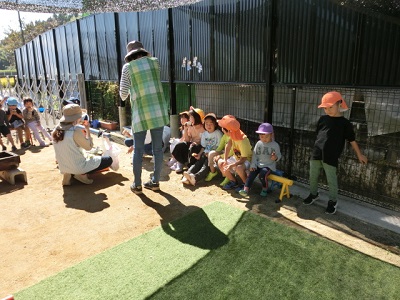 [R4.10.13(木)] ● 今日は、先週、保護者から頂いたサツマイモで「焼き芋」を作りました。 ● 焼き芋の準備をしていると、なんと、そこへサツマイモを頂いた保護者の野菜農家グループ4名がお越しになり、減農薬野菜をたくさん頂きました。ありがとうございました。 ● 焼き芋は時間がかかるので、事前にふかした状態で焼きました。中には焼き芋を落としてしまう子どももいましたが、みんな、おいしいと言って食べていました。 ● そのあとは、給食がおいしくなるようにいっぱい遊んでいました。 [1回]