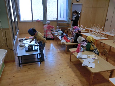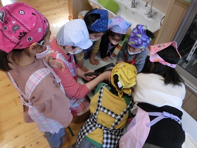 [R5.2.17(金)] ● 今日は久しぶりに年長さんがクッキングをしました。 ● 作ったのは、ぶどうとオレンジの「グミ」でした。 ● A君は、「ぶどうとオレンジを混ぜてみる。実験。楽しいなあ!」と、喜んでいました。 ● B君も「僕も混ぜる。楽しそう!どんな味かなあ」と。C子さんは、「私はぶどうで作る」と楽しそうに話していました。 ● 3時のおやつにおすそ分けがあるのか・・・。楽しみです。 [1回]