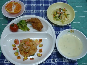 O 今回も、食育の先生によるおいしい昼ご飯でした。さつまいものスープも、とてもおいしかった・・・!毎回、心のこもった食事をありがとうございます。みんなおいしくいただきました。
